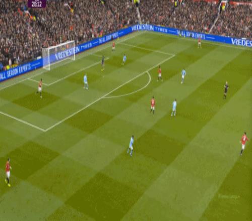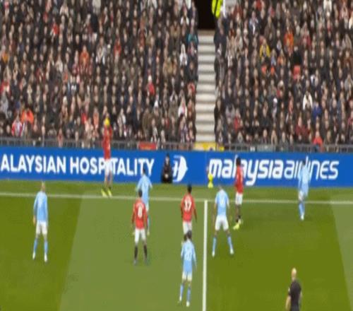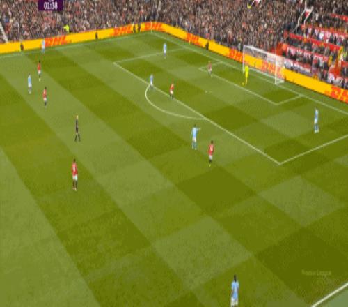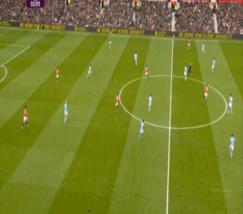 这也使得曼联在开场只有2分钟的时候,就用两次长球直打,直接进入了曼城的禁区线空间内: