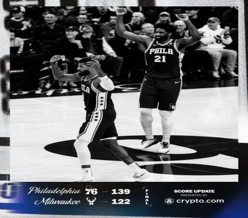 139-122,76人较为轻松地拿下这场与雄鹿的比赛,结束连败的同时守住了东部第6。